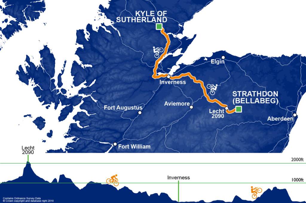 Tomorrow is rated 5/5 for difficulty, tackling the steep ramps of the Glenshee Ski Hill, past the Queen’s summer residence at Balmoral and into the Cairngorm mountains.